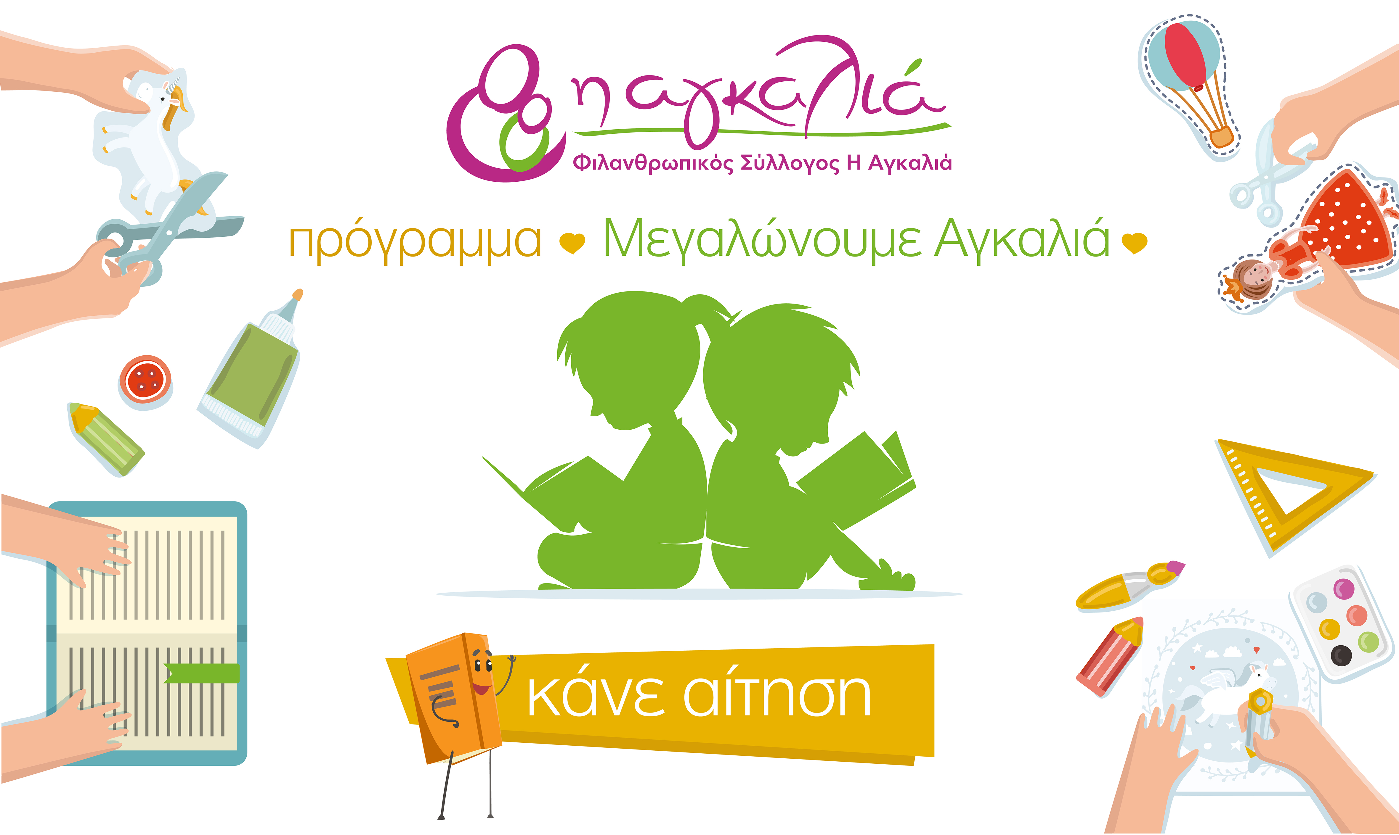 Ο Φιλανθρωπικός Σύλλογος Η Αγκαλιά, ανακοινώνει την έναρξη των αιτήσεων για την περίοδο 2021-2022, για το Κοινωνικό Πρόγραμμα της Αγκαλιάς «Μεγαλώνουμε Αγκαλιά».  Από σήμερα 08/07/2021 ημέρα Πέμπτη ξεκινά η υποβολή αιτήσεων για τη συμμετοχή των παιδιών στο Πρόγραμμα «ΜΕΓΑΛΩΝΟΥΜΕ ΑΓΚΑΛΙΑ».