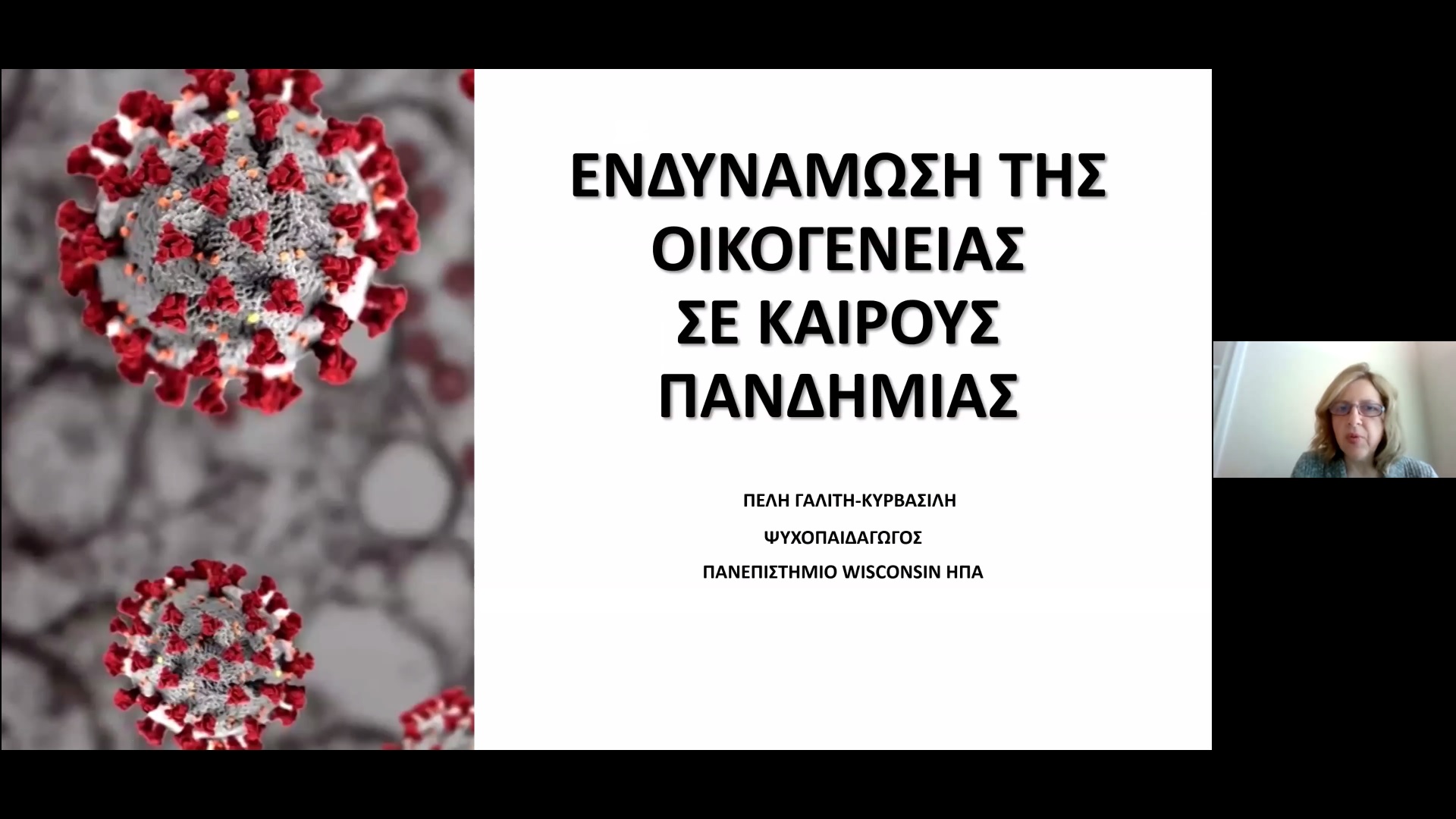 Η ομιλία πραγματοποιήθηκε την Παρασκευή στις 19/02/2021, με ομιλήτρια την ερευνήτρια του Τμήματος Παιδαγωγικής Ψυχολογίας του Πανεπιστημίου του Wisconsin-Madison & Διευθύντρια του Προγράμματος «Αγωγή στη Συγχώρηση», κυρία Πέλη Γαλίτη. Οι συμμετέχοντες είχαν την ευκαιρία να ενημερωθούν και να κατανοήσουν καλύτερα την ιδιαίτερη συνθήκη που προκαλεί η καραντίνα και να λάβουν πρακτικές συμβουλές και υπαρξιακές προτάσεις για τον λειτουργικότερο τρόπο διαχείρισης των δυσκολιών. Μέσα σε συνθήκες απομόνωσης για τις περισσότερες μητέρες μας, δόθηκε σε αυτές η ευκαιρία να νιώσουν μια βεβαιότητα ότι δεν είναι μόνες.