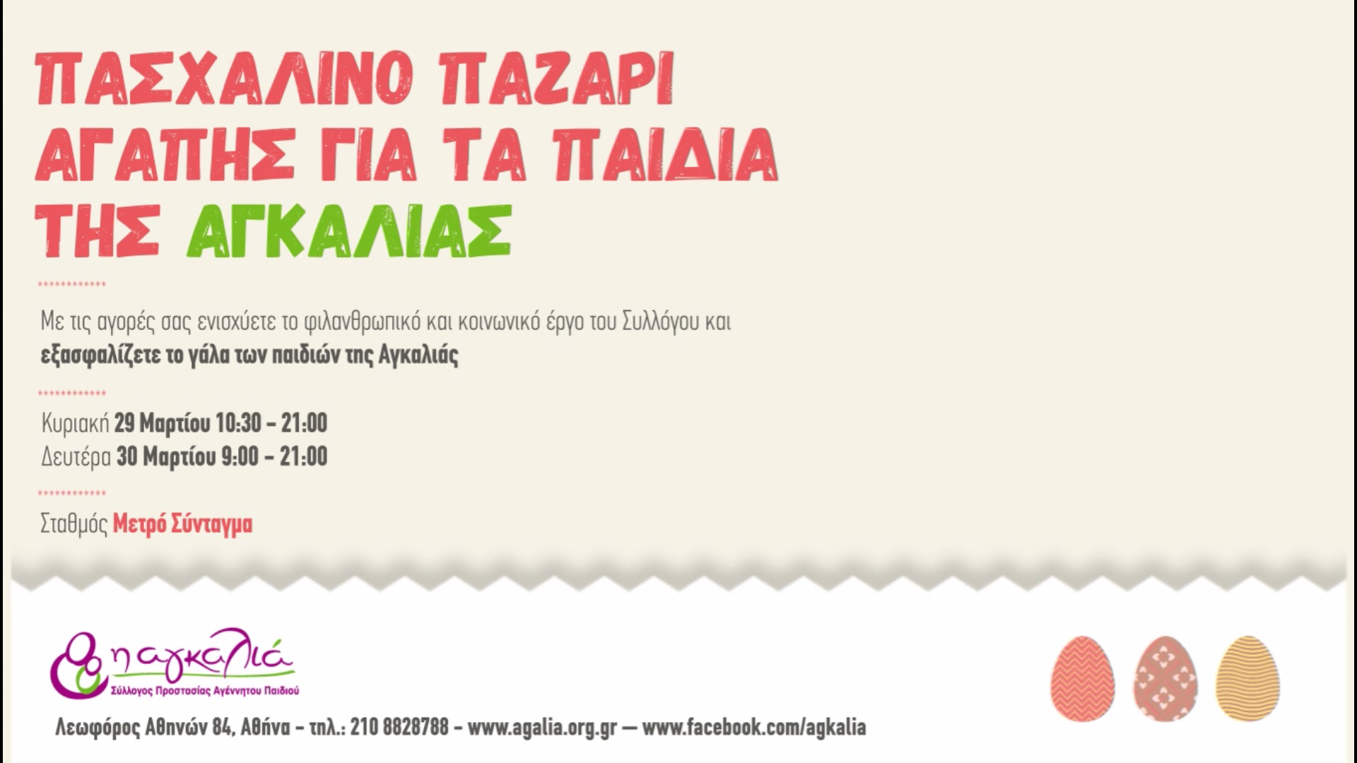 Πασχαλινό Σποτ Παζαριού Αγκαλιάς 2015 - Τετάρτη, 25 Μαρτίου 2015